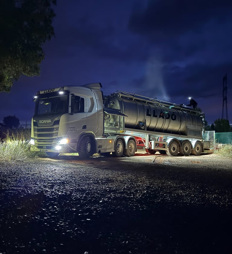 Comptem amb vehicles cisterna específicament adaptats per al transport segur d’aquests materials, complint amb tota la normativa vigent i assegurant-ne la traçabilitat.